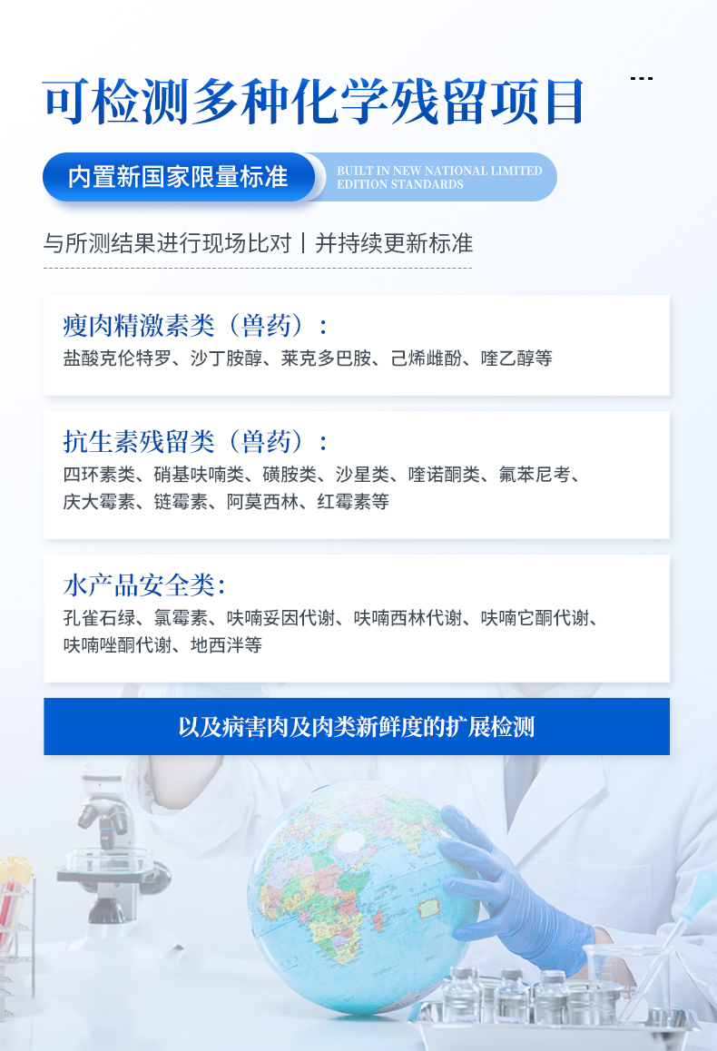 | 可快速檢測病害肉、組胺、揮發性鹽基氮,儀器預留其他項目檢測程序和端口,根據日后需求可方便的自主增加檢測項目。 |